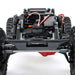 Axial also incorporates a clipless mounting system for the Pro-Line Coyote body, enhancing the rig’s looks by eliminating visible body clips. The body is hinged at the rear and removes completely for effortless chassis access. There are no clips to fuss with and lose. For the best performance on the trails, the body is pinched in the front, dovetailed, and bobbed in the rear, and only as wide as necessary. It slips through narrow obstacles and allows ample tire clearance and suspension articulation.