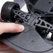 Secure, tool-free body mounting with hidden clipless latches. A simple push of a single hidden button under the front splitter releases the body. Makes battery changes and maintenance faster while maintaining a clean, scale look — no visible body clips to spoil the appearance.