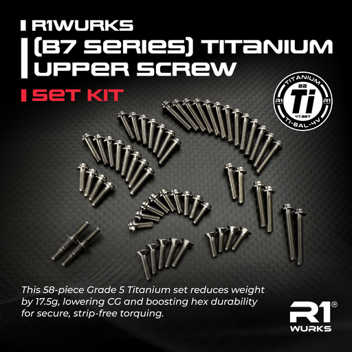 R1R1WURKS Premium Titanium B7 Upper Screw Kit This 58-piece set replaces the upper steel screws with lightweight, ultra-high quality Grade 5 (6Al-4V...