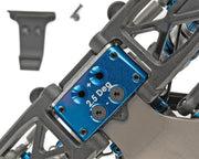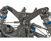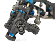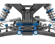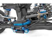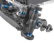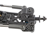 Durability is at the forefront with the RC10T7’s reinforced front end. It includes an aluminum front bulkhead, steel hinge pin brace, updated B7 V2 caster block, and zero KPI steering blocks with adjustable trail. These enhancements not only increase stiffness and strength but also provide racers with fine-tuned steering feel and precise control. The vertical front outer ball stud further expands tuning possibilities by allowing adjustments to roll center, camber gain, and link length.