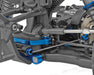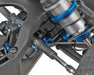 Durability is at the forefront with the RC10SC7’s reinforced front end. It includes an aluminum front bulkhead, steel hinge pin brace, updated B7 V2 caster block, and zero KPI steering blocks with adjustable trail. These enhancements not only increase stiffness and strength but also provide racers with fine-tuned steering feel and precise control. The vertical front outer ball stud further expands tuning possibilities by allowing adjustments to roll center, camber gain, and link length.