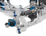 - Natural silver +3mm length aluminum chassis with 22.5-degree kick-up improves front-end geometry and minimizes chassis scrub