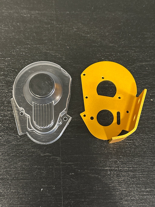 Team AssociatedGold motor plate for 6 gear transmission with gear cover and rubber plug This is new removed from ASC6008 Jay Halsey Rc10 kit.