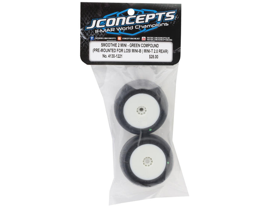 4130-1221 JConcepts Mini-B/Mini-T Smoothie 2 Pre-Mounted Rear Tires (White) (2) (Green)