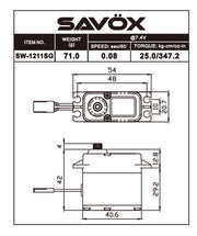 SW-1211SG-BE (Black) Waterproof High Voltage Digital Servo 0.08sec / 347.2oz @ 7.4V - Black Edition SAVSW1211SG-BE